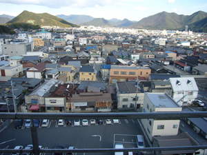 朝6時前に消防署のサイレンで起こされる。町の全貌が見えるホテルの部屋からは2ヶ所で煙が上がっている。やがて消防車2台が出動していった。右手に見える煙の方に行ったが、間もなくガッカリしたように消防車が帰ってきた。消火されたあとに行って用がなく帰ってきたらしい。以前泊まった時も朝早くサイレンで起こされた。この時は洪水だった。川が氾濫しそうになっていた現場に飛んでいった。川はうなり声を立てて流れていたが、堤防の決壊はまぬがれた。市長もいたので、「堤防の決壊する所を見たかったなぁ」と言ったら、「えらいこと言わんといて下さいな、夜も落ち落ち眠れへんかったというのに」と怒られてしまった。郷里に帰ると子供時代に戻ってしまって災害があると子供みたいに興奮してしまうのである。