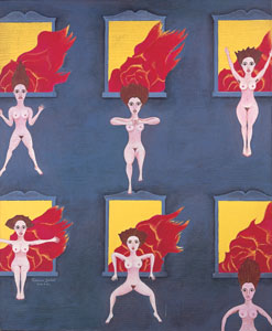 金沢では「弁当持たなくても傘は持て」(だったかな、自身ないけど)というほど雨の多い土地らしいが、ぼくが滞在中は、「これって異常気象ですよ」と言わしめたほど連日ピーカン続きでした。また5月にも公開制作をします。それとひとつお願いがあります。それはぼくの1966年の絵画作品(処女作)の模写作品(横尾工房)を募集しています。サイズはF20号でアクリル絵具使用です。原寸のサンプルは用意しています。トレスをして現物そっくりの贋作を作るつもりで描いていただきたいのです。ビルが火事になって窓から裸の女が飛び降りている作品です。くわしいことは金沢21世紀美術館(TEL:076-220-2801)の学芸員の平林さんに問い合わせてみて下さい。すでに30人近い人の参加が決まっています。本当は美術館のアトリエで制作することになっていますが、最寄りで参加希望者がおられましたらどうぞ。勿論、離れた場所(自宅)でも全く不可能というわけではないと思います。ただ説明の理解度が問題ですが。