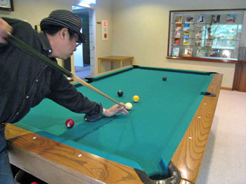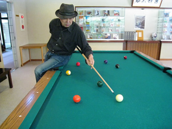 今日は河口湖に来ている。NHK出版富士資料センターで11年前に出版された夢絵日記「夢枕」の新装版の編集作業中。仕事の合間のビリヤードで汗をかく。ビリヤードのトッププロのスーパーショット集のDVDを観ながらスタッフはプレーをするも、何ひとつ教訓になっていないことが明らかになった。それはともかく、いつもなら目の前に巨大にして雄大な富士山が見えるのに、辺りの森は真っ白な霧に包まれている。ひんやりした冷気が体に突き刺さるが、ビリヤードのキューは思うように狙いに突き刺さらないものだ。快感と無念(欲求不満)がせめぎ合う。