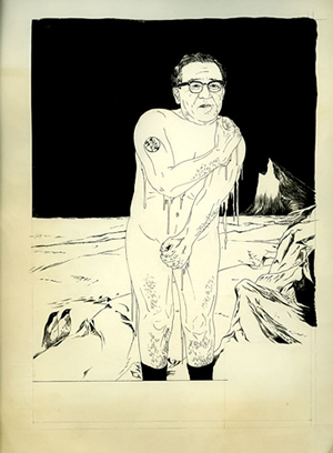 39年前の1970年の「週刊現代」(1/22)に発表した1頁大のイラストレーションが講談社の倉庫から2点発見(もう一点は発見されず)されたといって当時の編集者(すでに退社)ではない別な方から送っていただいた。この頃は夢中でイラストレーションを描いていた。今になって見ると懐かしい。34才の時の作品。当時は絵を描いても編集部に渡しっぱなしで、滅多に返却されなかった。勿論催促すれば返却されるのだが…。こうして行方不明になった作品が随分ある。当時古書店で手に入れたという人がいるが、こうしてどこかに存在している場合はまだしも、社内で移動があったりする時に用済みの原稿として処分されたものも多いはずだ。現在でも例え出てきたとしても誰の作品か分からないまま秘かにどこかに眠っているかも知れない。このブログを見た人の中で、もし誰かが所有しているような場合はぜひ一報いただきたい。