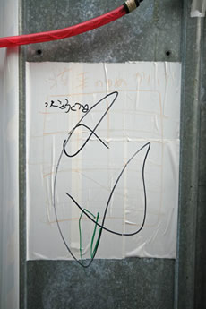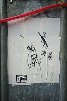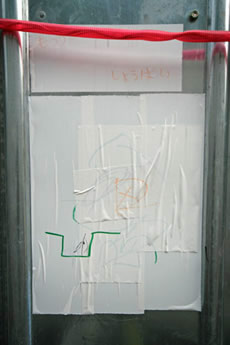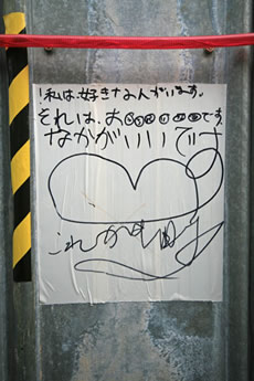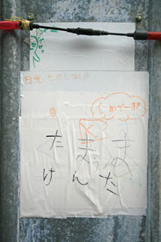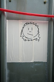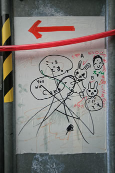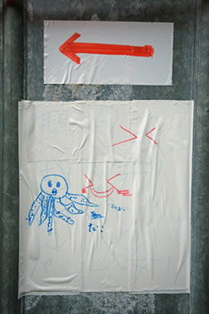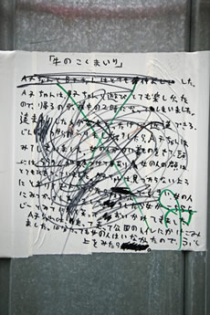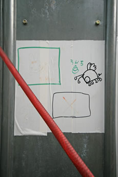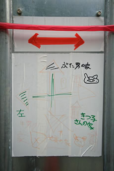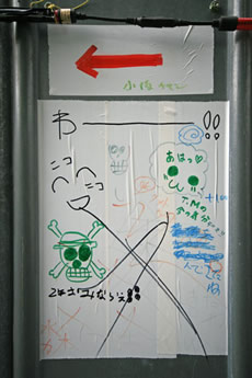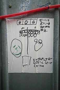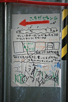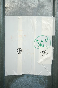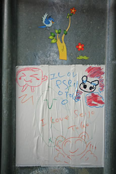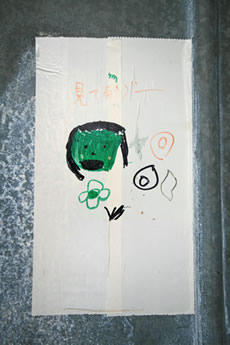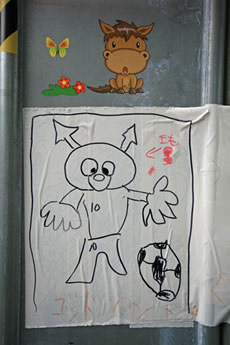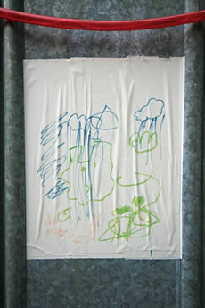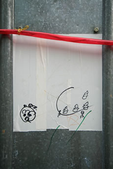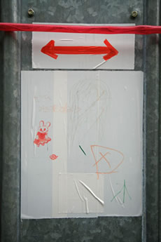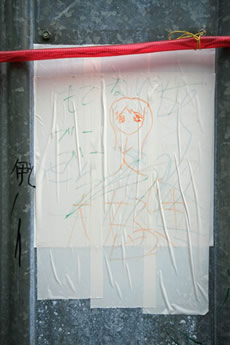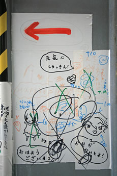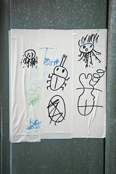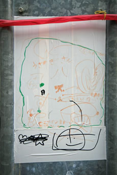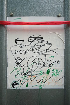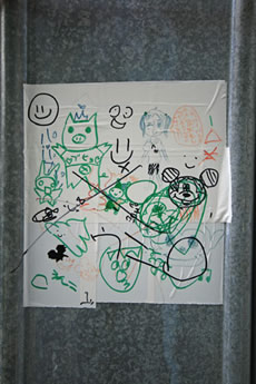 ◆「わが家の前の工事現場のステンレスの壁に子供達が絵を描いています。