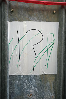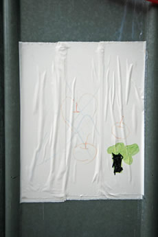 2日目も盛況(公開制作のこと)。昨日2時間、今日2時間半、なんとなく完成。残りの時間(4時迄)はトークに切り換え。Y字路が次第に溶けかけ、崩れかけ、消えかけの方向に来た。