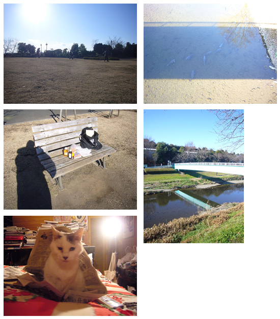 元旦恒例のニューイヤー・駅伝を見ないで、晴天の正月を感じたいために先ず外に出る。足は自然に近くの喜多見不動に向かう。初詣。公園に行って見る。どこに人が消えたのか静かだ。時々人影が現れたり消えたりする。ベンチにドラ焼き三個、市田柿三個、ミカン一個、オロナミンC、ペットボトルのレモンティを並べる。佐藤春夫の「永井荷風伝」を開く。微風もなく、頬を刺す無数の陽光。元旦早々ベンチで食する我の姿はホームレスか。そう思われることをどこかで望んでいる孤独を愛する自分。「自然」が自然に思索を招く。自然は瞑想の場であり、アトリエであり、書斎であり、仮眠室である。近くに荷風を感じる。