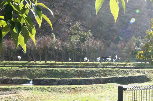 豊岡の近くで初めてコウノトリを見る。ゆっくり歩いている者、上空を飛んでいる者、身動きしないで立ちっぱなしの者、様々。思ったより大きいのに驚く。この大きさじゃ、赤ん坊を首にぶら下げて飛べそうだ。